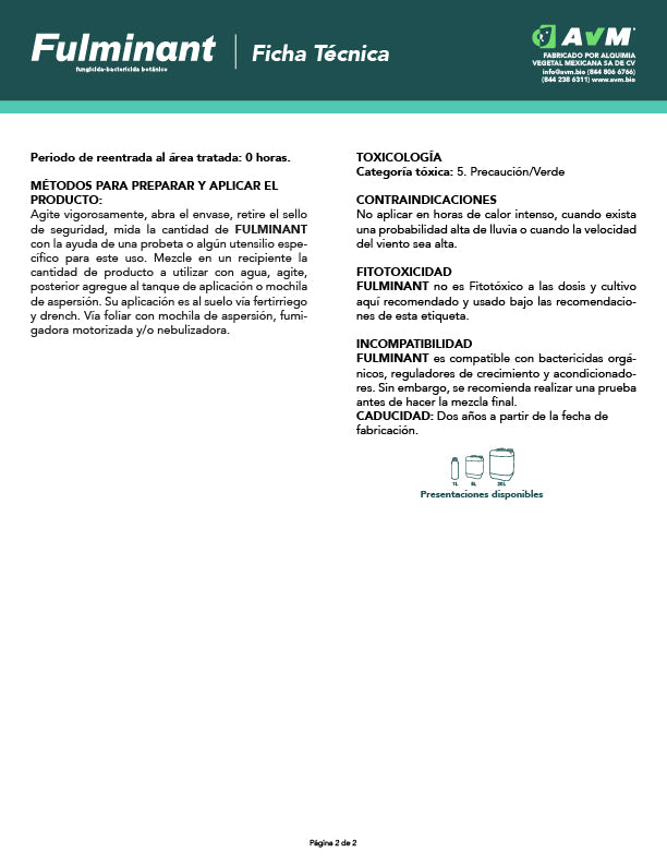 Fungicida-Bactericida de origen botánico de amplio espectro. Actúa por contacto y de manera eficiente contra hongos y bacterias.