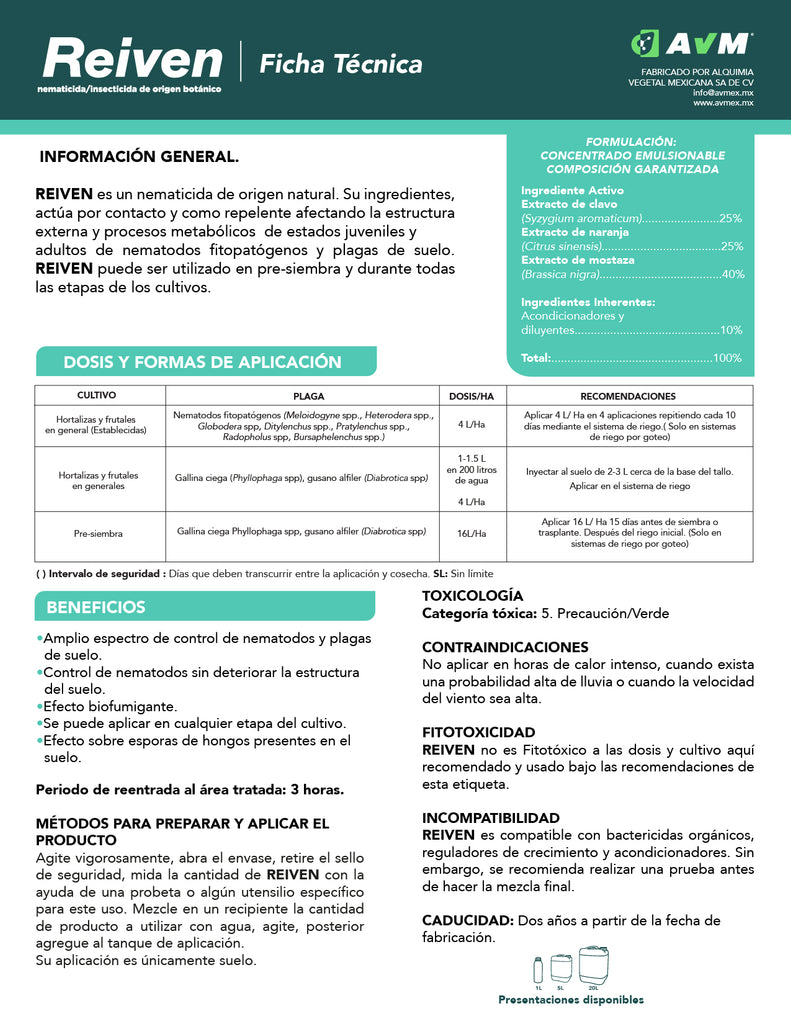 - Amplio espectro de control de nematodos y plagas de suelo.